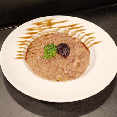 Το ριζότο μας, το οποίο ονομάσαμε "Pink Flamingo", ήταν μία έκπληξη για τους επισκέπτες μας. Με ροζ απόχρωση που προέρχεται από φυσικές χρωστικές, συνδυάσαμε τρυφερό κοτόπουλο με αρωματικά μυρωδικά, δημιουργώντας ένα οπτικά και γευστικά εντυπωσιακό πιάτο.