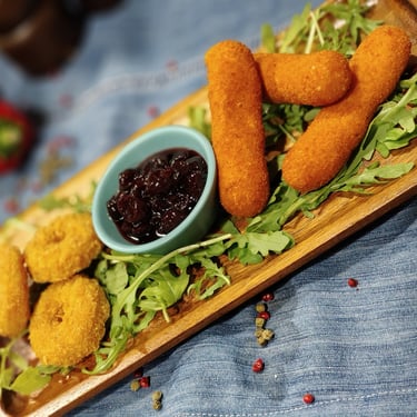 Κροκέτες τυριών (κροκέτες κίτρινων τυριών με συνοδευτικό γλυκό βύσσινο)