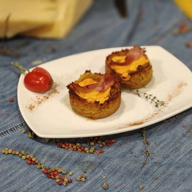 Φωλιά πατάτας με κιμά (φωλίτσες πατάτας γεμισμένες με μοσχαρίσιο κιμά, τσένταρ και μπέικον)