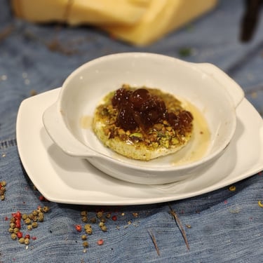 Μανούρι ψητό (με φιστίκι Αιγίνης και γλυκό του κουταλιού σταφύλι)